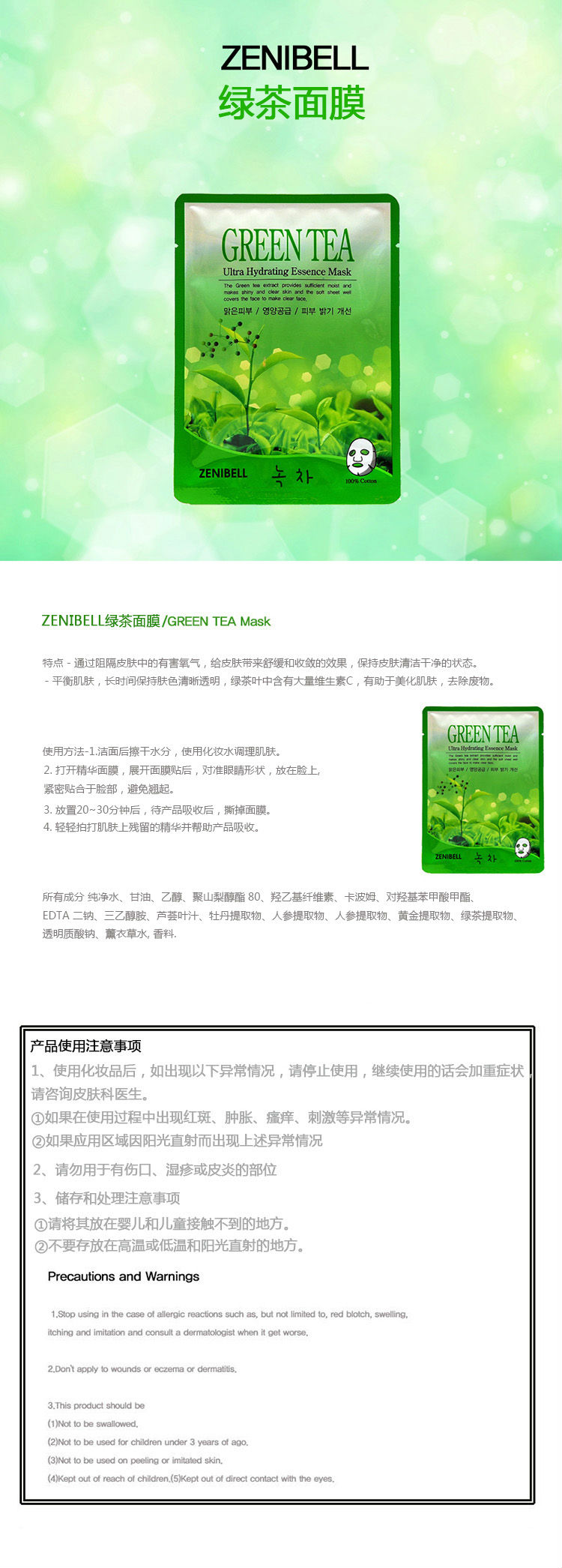 Product name:[Korea Cross Border]Korea ZENIBELL GREEN TEA MASK